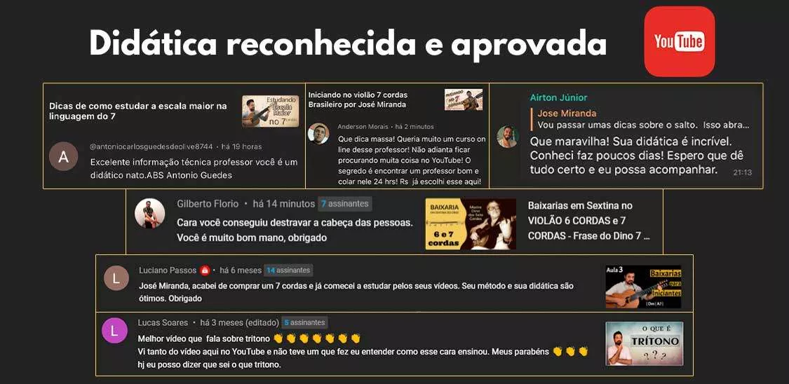 José Miranda é violonista, compositor, arranjador e professor. Com formação em Choro no Conservatório de Tatuí/SP e especialização em Violão 7 cordas, José é reconhecido no cenário musical brasileiro e internacional, fazendo shows e ministrando workshops em diversos países. Como compositor, é conhecido por obras que transitam entre a música clássica brasileira e a música moderna, com composições premiadas em festivais de Choro no Brasil. Com dois CDs solo lançados e vídeos instrutivos de grande sucesso, José é um palestrante experiente em workshops online, realizando projetos para a Secretaria de Cultura de Santa Catarina no Brasil. Não perca a oportunidade de aprender com um dos grandes nomes do violão brasileiro de 7 cordas!